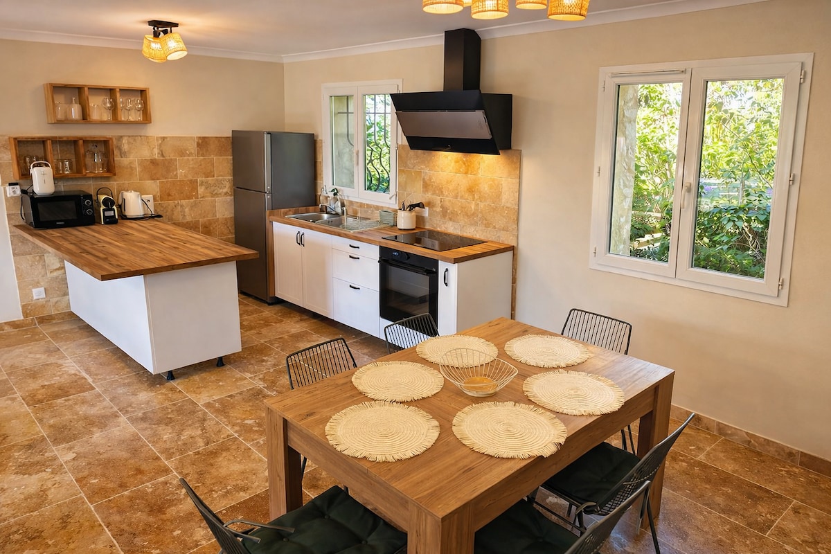 "La Maison aux Oliviers" è un piccolo maso di charme di 90mq, climatizzato, indipendente e situato su un antico uliveto, tranquillo in un giardino paesaggistico che offre una bella piscina privata riscaldata e sicura. La sua ampia veranda offre la possibilità di vivere all'aperto al riparo dal sole e dal vento (maestrale). Vicino al centro storico, al mercato locale e ai negozi (a piedi), è perfettamente attrezzata per il telelavoro (fibra ad alta velocità)