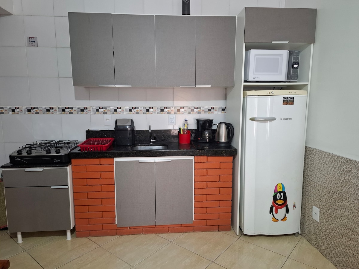 Temos tres apartamentos um (1) térreo y (2 e 3) em segundo andar, cada um bem arejados, boa luminosidade. Localização a 350 metros da praia. Tranquila, familiar. Tem vaga para carro. Wifi. Ar Condicionado "Opcional". Frigobar "Opcional". Providenciamos Roupa de cama. Cobertores. Ventilador, Cozinha com água quente. Micro ondas, refrigerador. Em mezanino um sommier queen e Smart tv com Disney+, Star+ e Netflix. Cama solteiro. Churrasqueira incluso. Caderas de praia.