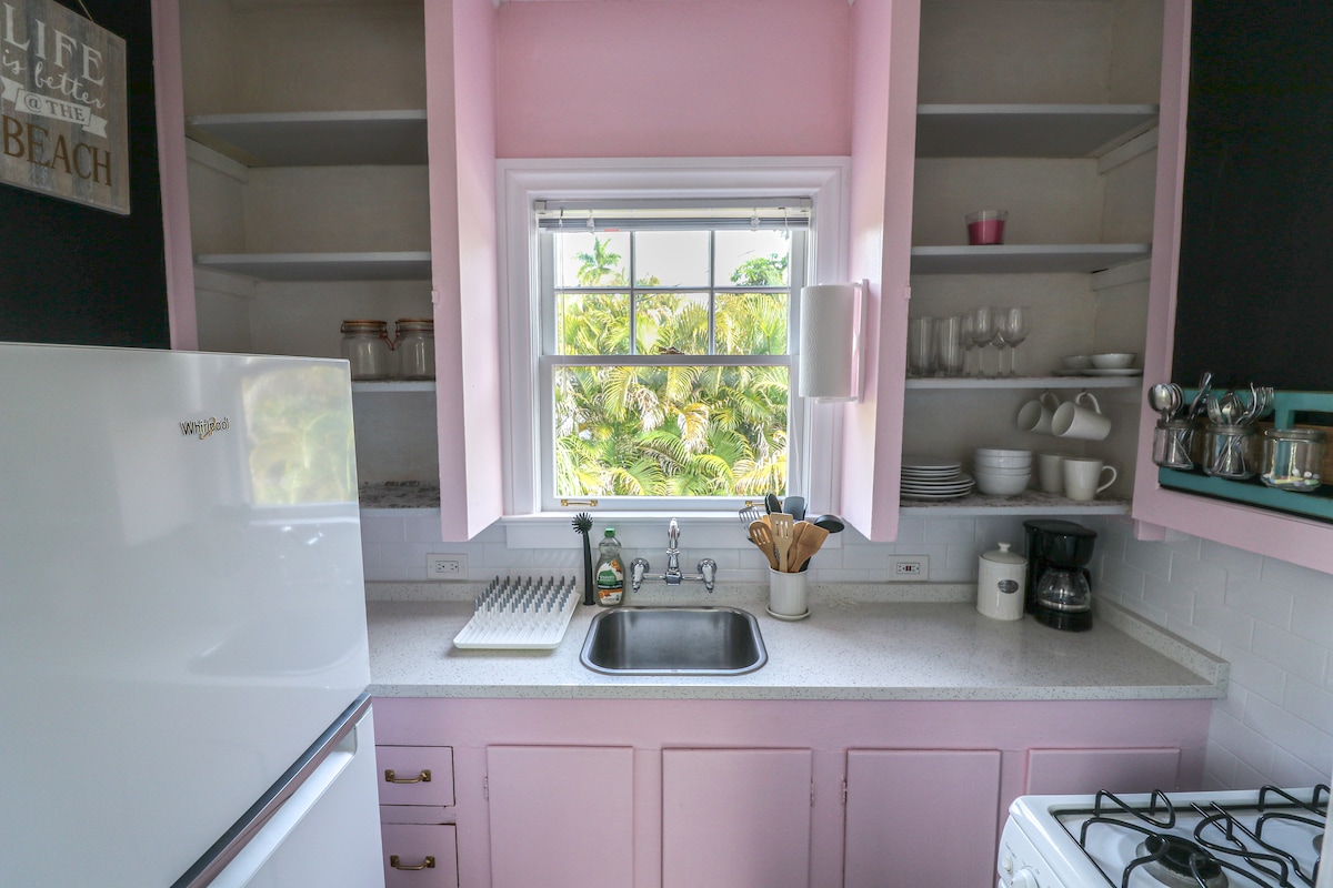 Cottage in stile Key West, leggero, luminoso e pulito, situato nel quartiere storico del centro di West Palm Beach. A pochi passi da un bellissimo parco (parco per cani/parco giochi/campo da tennis/campo da basket). Situato vicino a tutto (spiaggia, negozi, ristoranti). Completamente attrezzato con cucina, una suite matrimoniale con ampio armadio, lavanderia, angolo pranzo, soggiorno con TV HD e zona pranzo all'aperto privata con griglia. Ingresso privato con due biciclette da spiaggia a disposizione per goderti il soggiorno!