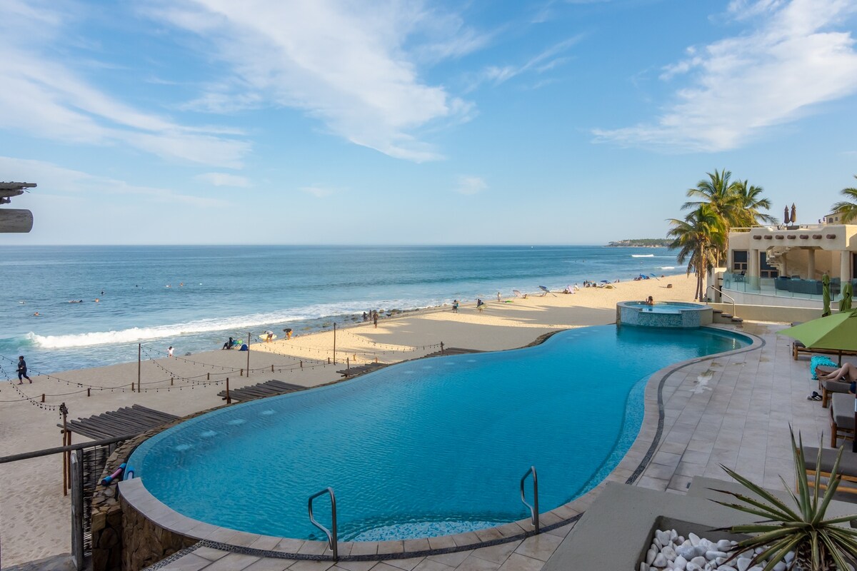 Questo attico ha la migliore vista di tutta Los Cabos! Siamo direttamente sopra i 2 migliori surf break della zona, Old Man's e The Rock, e una grande spiaggia balneabile, Acapulquito. Goditi una grande terrazza con piscina riscaldata, braciere, cucina esterna completa con barbecue, lavandino, frigorifero e macchina per il ghiaccio. Splendide albe E tramonti. A 10 minuti a piedi dalla spiaggia. È perfetto per famiglie, coppie o gruppi in cerca di qualcosa di diverso da un soggiorno standard in un resort.