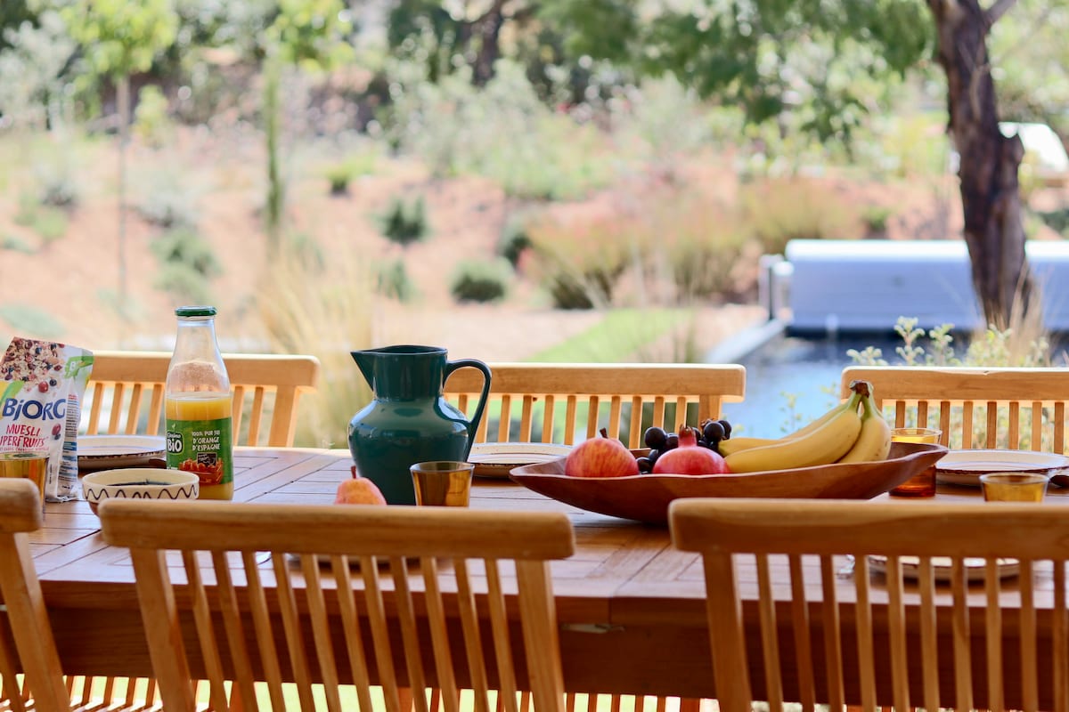 A 15 minuti dalle più belle spiagge della Corsica sarete tranquillità a bordo della piscina riscaldata privata circondato da vigneti, con il golfo di Figari all'orizzonte. Perfetto per famiglie o amici: lo spazio in casa permette di avere una grande intimità. Innamorata della mia regione sarò felice di aiutarvi a preparare al meglio il vostro soggiorno: degustazioni di vini in cantina, spiagge segrete, itinerari per passeggiate. Se riuscite a lasciare la casa, Bonifacio e Porto-Vecchio sono a 15 minuti.