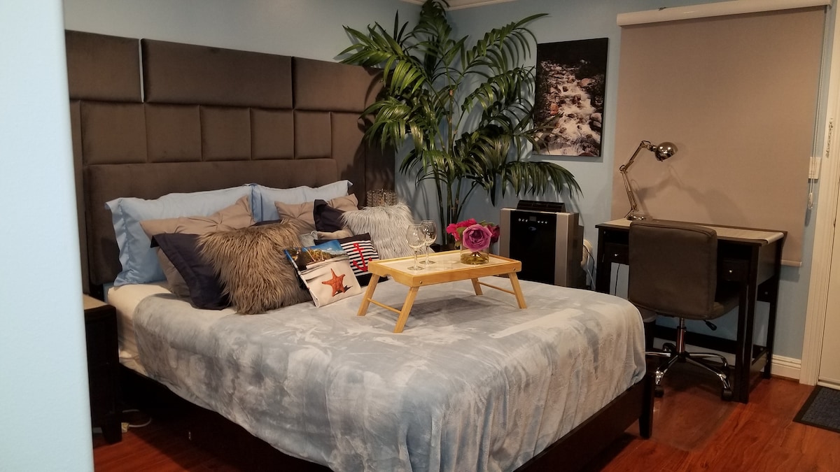 Affascinante camera simile a una suite in un giardino urbano con ingresso privato, portico e parcheggio fuori strada. Goditi questo spazio immerso nella natura vicino al centro di San Pedro, al L.A. Waterfront & Cruise Terminal e alla spiaggia di Cabrillo, al molo e al porto turistico. Un luogo perfetto per rigenerarsi, esplorare o diventare creativi! Che si tratti di visitare la famiglia o gli amici, esplorare la bellezza della costa californiana e di Los Angeles o di una vacanza creativa e stimolante, la Suite @ Harbor Farms ti aspetta. Le città verdi e gli esseri umani felici sono la nostra passione!