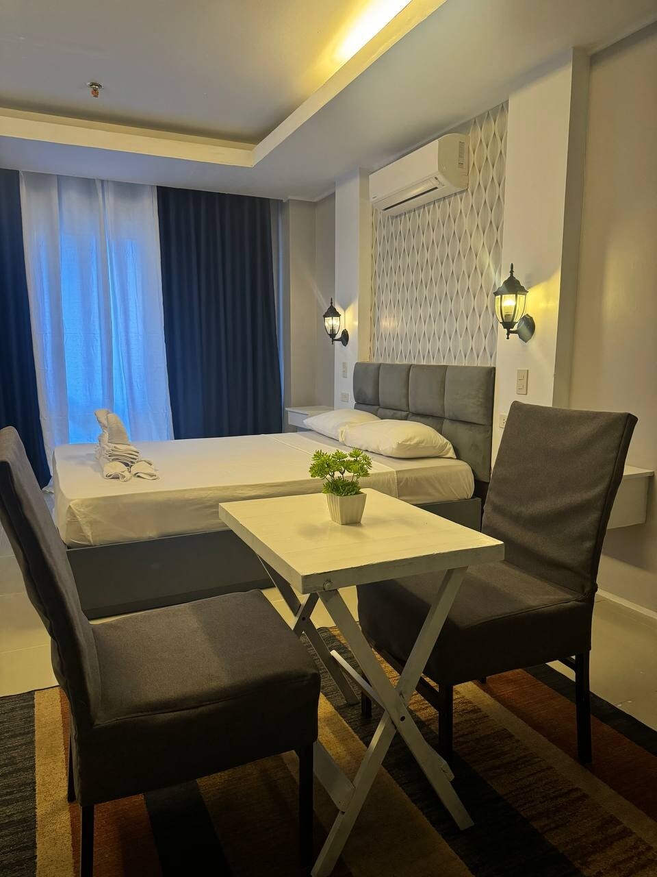 Staycation in Pampanga for only P2500/night 🏝Man-made Beach and wave pool 🌊 ⛰Spacious balcony - Mount Arayat view 🔅Minimalist Interior with extra bed Can accommodate max 4 person Studio unit with extra bed