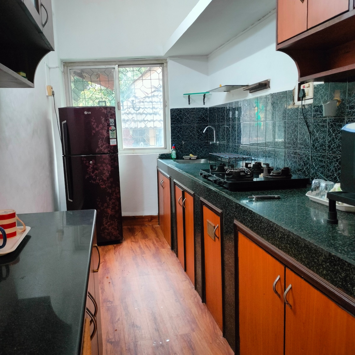 Di proprietà e gestito da @larahomesgoa Tranquillo appartamento 2BHK situato in un quartiere tranquillo e sicuro. Punto di riferimento: di fronte al campo di calcio di St-Cruz, a 2 km da Panjim *Questo alloggio è di proprietà dell'host e viene gestito da lui, quindi aspettati che sia pulito, ben tenuto e che tutti i servizi elencati siano presenti e funzionanti. La struttura è esattamente come mostrato nelle foto, quindi puoi essere sicuro di un soggiorno senza problemi* Swiggy, Instamart, BlinkIt e Zomato consegnano a casa tua fino a tarda notte