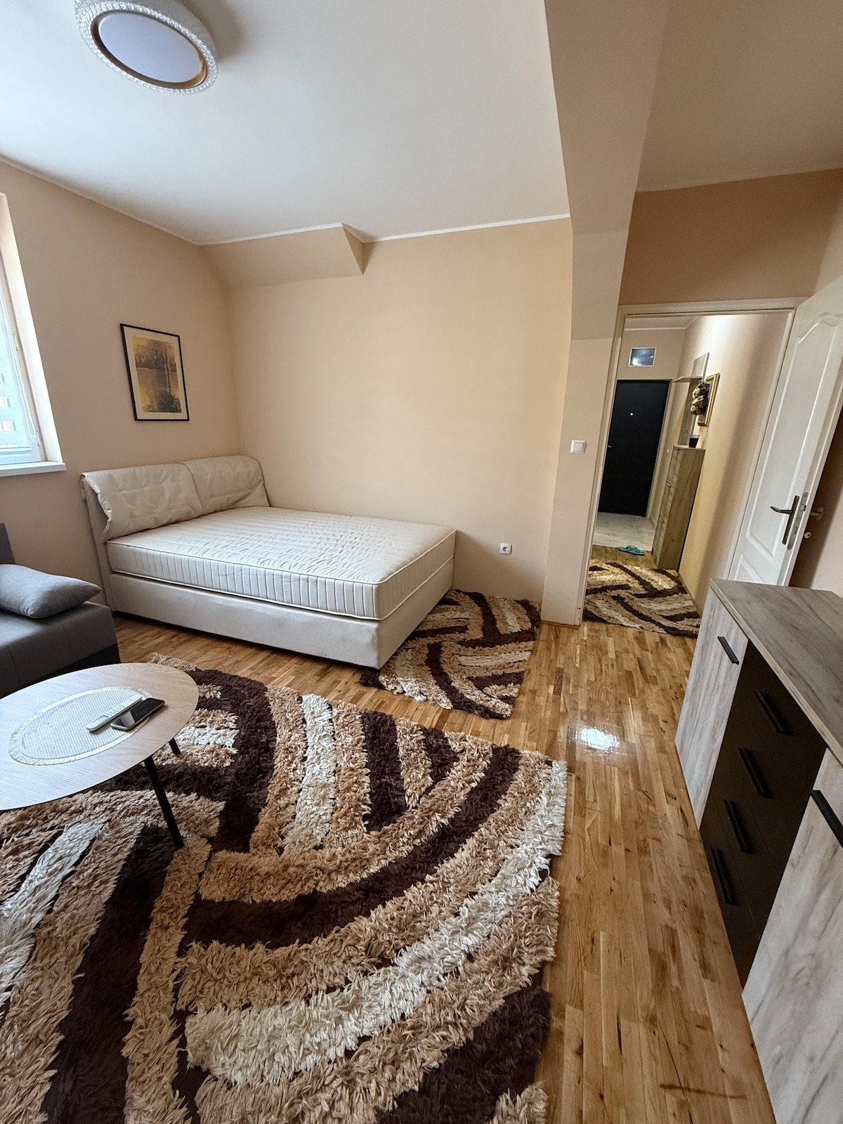 Questo moderno monolocale si trova nel cuore di Belgrado, a soli 2 minuti dalla vivace strada pedonale Knez Mihajlova. Questo appartamento offre splendide viste panoramiche su Belgrado e sul fiume Sava, ed è perfetto per viaggiatori singoli, coppie o piccoli gruppi fino a 4 persone. Sia che tu stia cercando un soggiorno a breve termine o un soggiorno più lungo, questo appartamento è l'ideale per entrambi, permettendoti di sfruttare al meglio il tuo tempo a Belgrado e goderti un'esperienza davvero unica.