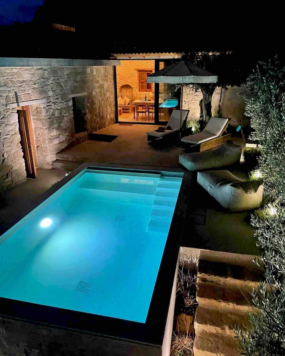Mikro 1890, un raffinato cottage in pietra di lusso con due camere da letto e bagno privato, dal design moderno, dotato di una piscina privata con getti d'acqua. Il riscaldamento della piscina è disponibile su richiesta presso il proprietario a un costo aggiuntivo.