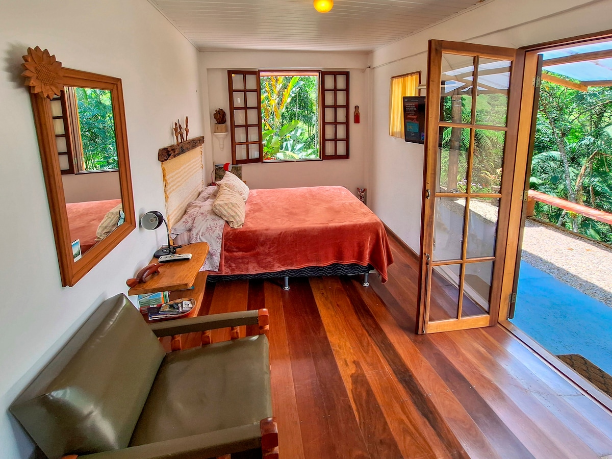 'Casinha', così chiamata affettuosamente da noi. Casa di campagna confortevole senza perdere l'originalità. Circondata dalla natura, con un'incantevole vista su una valle di montagne e il suono di un piccolo ruscello in sottofondo. Si può godere del caminetto, della stufa a legna e di un affascinante balcone, spesso frequentato dai colibrì. Il prato che circonda la casa è perfetto per prendere il sole, godersi il cielo stellato, pranzare immersi nella natura o semplicemente riposare sulle sdraio.