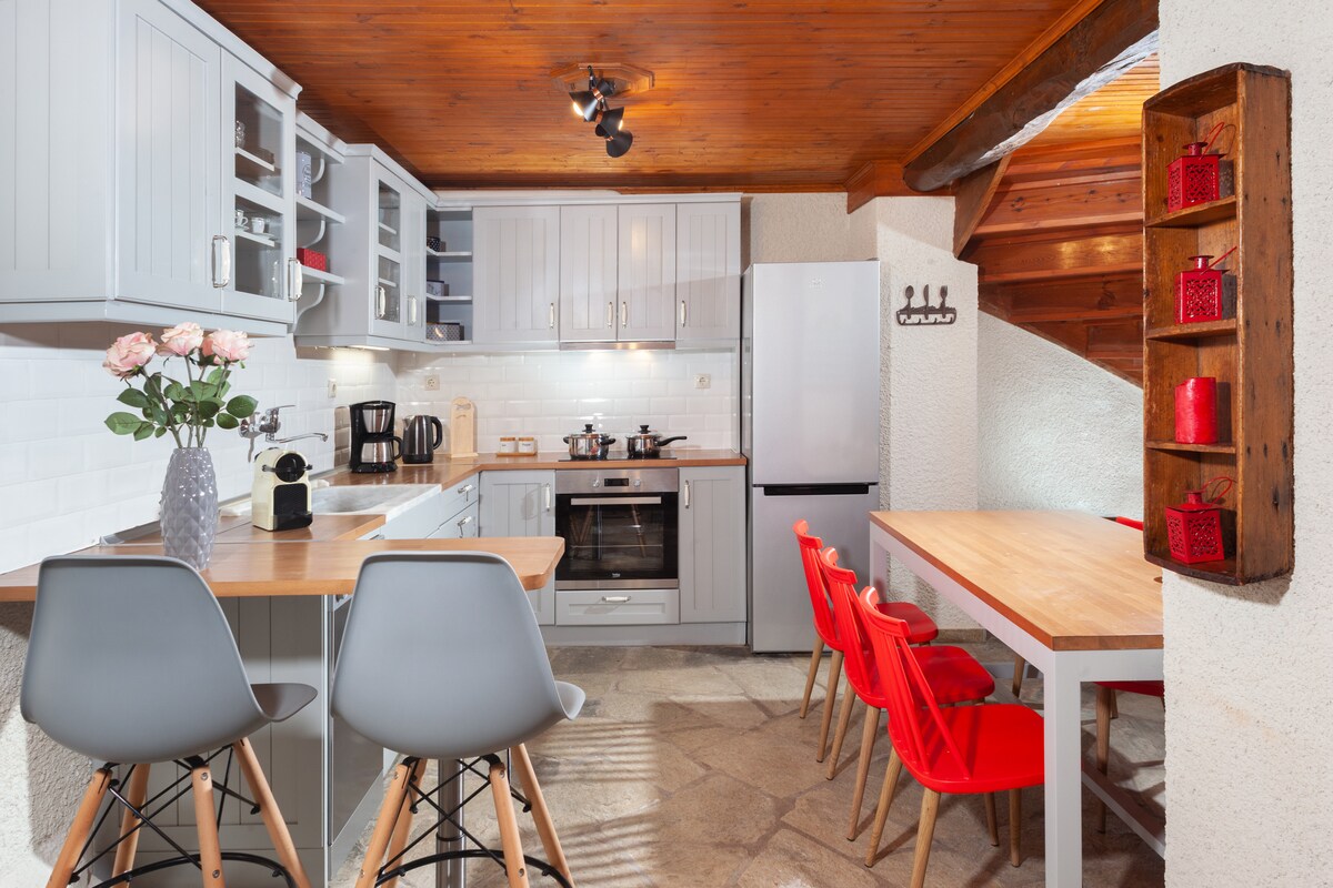 Casa a due piani con soppalco, 108 m² in pietra e legno nel primo villaggio di Pelion, Agria. A 80 metri dalla spiaggia, a 7 km dal centro di Volos e a 19 km dal centro sciistico di Pelion. Barbecue in pietra all'esterno per le giornate di sole e caminetto all'interno per quelle fredde.