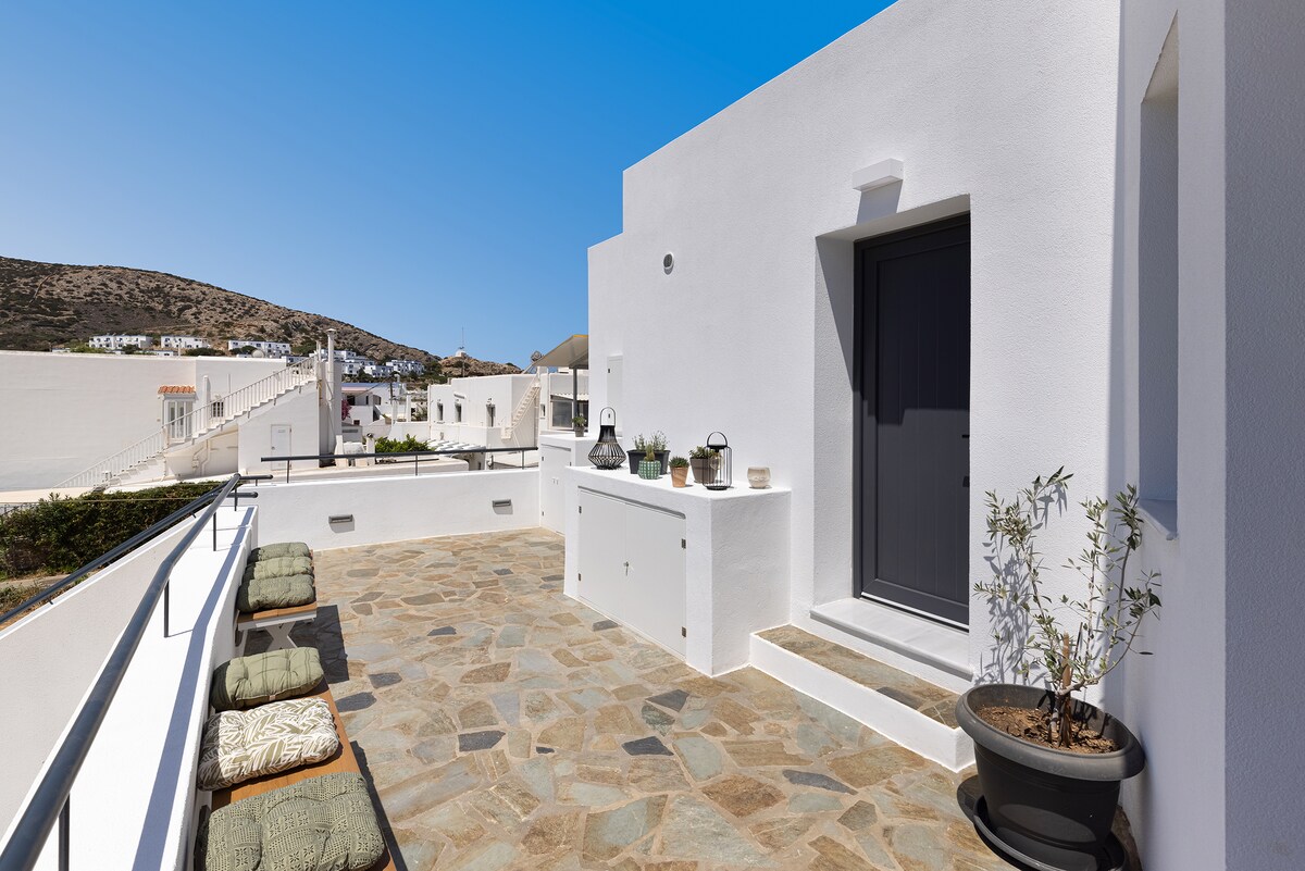 Bellissimo appartamento urban chic al 2° piano (senza ascensore), recentemente ristrutturato, con ampia terrazza. L'appartamento di Nastia dista 15 minuti a piedi dal centro paese e dal porto. In 5 minuti è possibile visitare il Museo Industriale e il Museo Tessile di Ermoupoli. Nelle vicinanze ci sono anche supermercati, farmacia, ospedale, palestra e panetteria. È ideale per chi lavora da remoto, in quanto è spazioso e dotato di tutti i comfort e le attrezzature necessarie per la vita quotidiana. Wi-Fi veloce e gratuito, una splendida terrazza per il relax e per il lavoro.