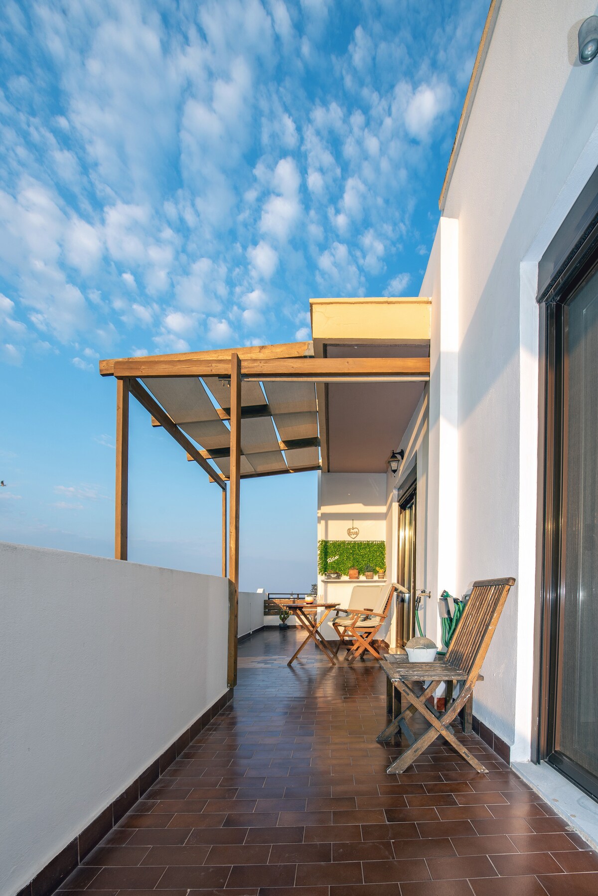 Indulge in luxury living at our penthouse with stunning city and sea views. Featuring a fully furnished one-bedroom, one-bathroom unit with ample natural light, a separate kitchen, living room, two balconies, and a large terrace with a full BBQ setup. Enjoy the beauty of the Greek landscape and witness a mesmerizing sunset from your own private oasis. Experience Greek hospitality and relaxation at our immaculate penthouse. Make your stay unforgettable and elevate your senses with us.