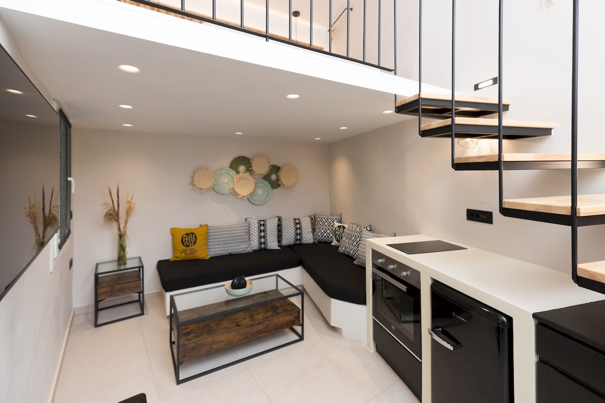 Un monolocale unico e in posizione perfetta (1 letto matrimoniale) nella città (Chora) dell'isola di Tinos! Tutto il necessario si trova letteralmente a portata di mano! Include una terrazza privata con vista sul porto e sull'intera Tinos Chora. Aria condizionata, caffè e Internet sono inclusi. Molto vicino al molo delle navi e alla Chiesa. Adatto a coppie o due amici!