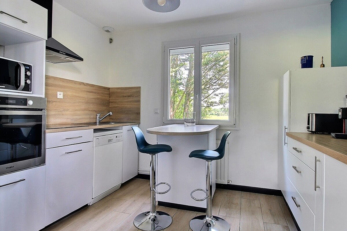 Benvenuti al "Clos Mylodro", alloggio adiacente alla nostra casa 🏡, classificato ⭐️⭐️⭐️⭐️, situato a 3 minuti dall'ospedale privato De Varye e a 10 minuti di auto dalla stazione ferroviaria di Bourges, in una tranquilla zona residenziale 🌴 Grazioso e confortevole appartamento completamente attrezzato con biancheria di casa fornita che può ospitare 4 persone 🧑🧑🧒🧒 (+ bambino 👶🏻). Doppio parcheggio privato che può ospitare auto e camion 🚚🚘 ⚠️ Le aree comuni da condividere sono la piscina, il parco giochi e il giardino.