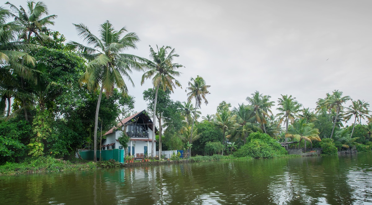 Ti diamo il benvenuto nella nostra splendida villa con pareti in vetro sulle tranquille isole Munroe, circondata dalle acque calme del lago Ashtamudi. Goditi ogni mattina una colazione in stile Kerala, preparata in casa, fresca, locale e fatta con amore. Perfetto per coppie, piccole famiglie o viaggiatori solitari, questo accogliente rifugio offre una bella miscela di comfort moderno e fascino naturale.