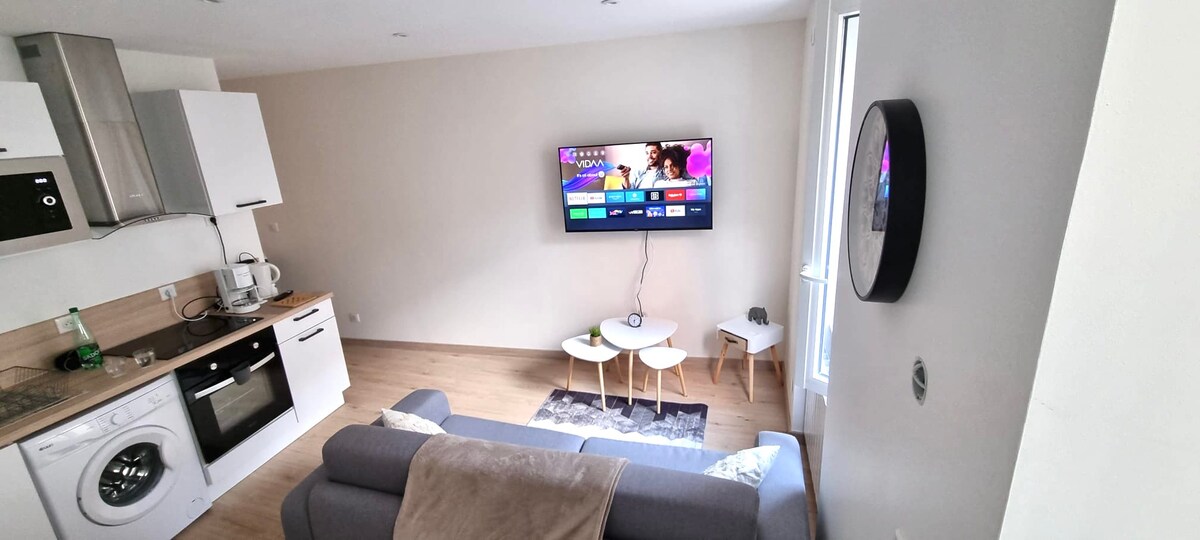 Alloggio elegante e centrale di 31 mq: 1 camera principale con cucina integrata (e divano letto), 1 camera da letto e un bagno. Rastrelliera per biciclette nel corridoio d'ingresso adiacente (foto) Nel cuore del centro storico e del centro della città, a 250 m dalla nostra Basilica, all'incrocio delle cappelle di Paray, potrete passeggiare per le strade della nostra bella città. Vicino a tutti i servizi, tranquillo, al piano terra, questo appartamento si trova in un antico edificio ricco di storia.