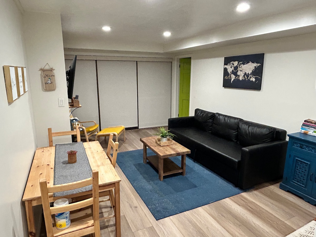 Studio Prospector ristrutturato con letto matrimoniale e comodo divano letto completo con materasso in memory foam. L'unità dispone di un tavolo da pranzo per 4, camino elettrico, 40" HDTV con DirecTV e DVD, coperta, & connessione Wi-Fi gratuita! La cucina ha una combo lavasciuga, frigo bar, piano cottura a quattro fuochi, forno a microonde full size, caffettiera Kuerig con una selezione di caffè, tè e persino cioccolata calda! C'è anche un tostapane, un frullatore e un forno a convezione da banco Oster abbastanza grande per una pizza da 12"!
