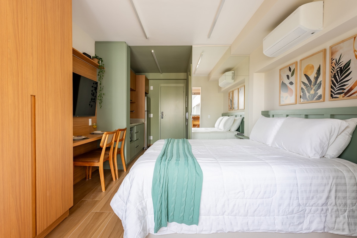 Monolocale completo per un massimo di 4 persone con un'eccellente area ricreativa. - Smart TV da 50 pollici con Netflix e Amazon Prime. - Internet in fibra Wifi 300 mb - Cucina compatta - Garage WAG - Aria condizionata - Biancheria da letto e da bagno inclusa Aree comuni: - Piscina climatizzata - Mercadinho- Lavanderia- Academia Ottima struttura per accogliervi con grande comfort, sicurezza, accessibilità e posizione. Lo spazio per chi viene in auto o vuole essere vicino alla metropolitana (São Joaquim - Linha Azul e Vergueiro)