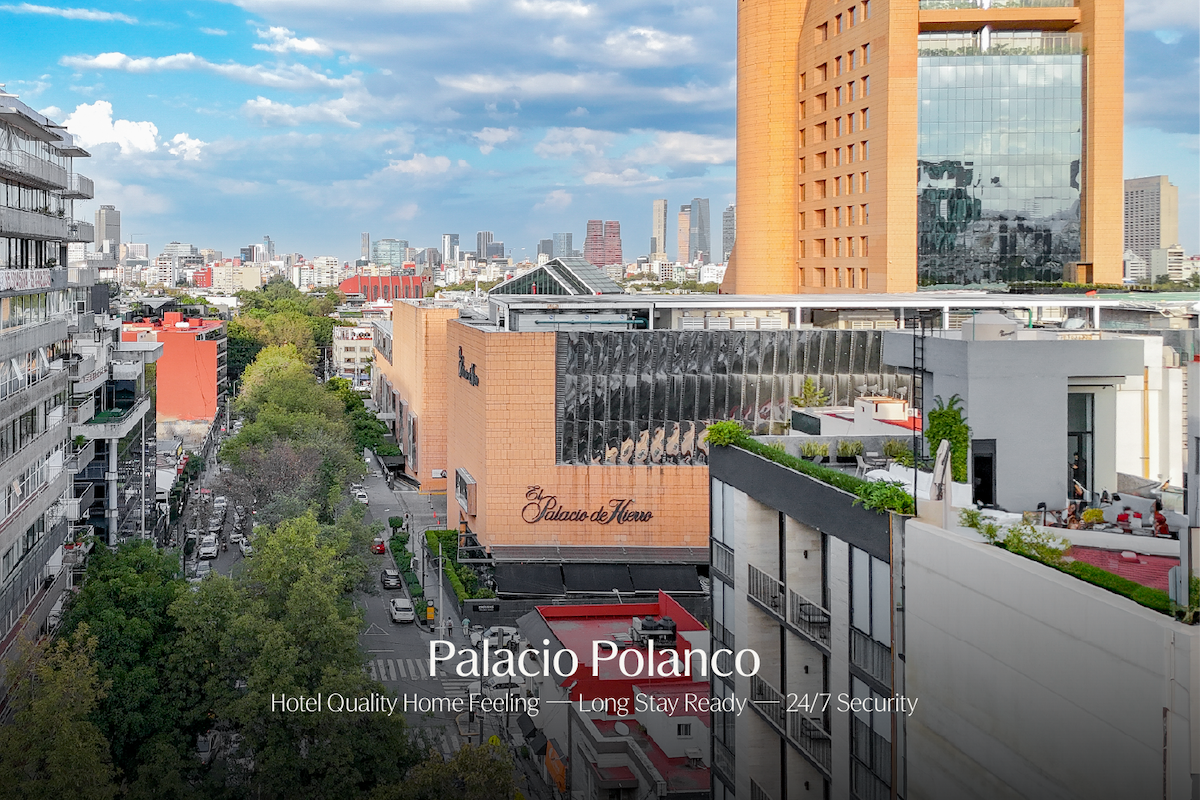 Rifugiati nel tuo elegante rifugio urbano nel cuore di Polanco! Ammira la vista sulla città dal balcone privato, perfetto per il caffè del mattino o i cocktail serali. Rilassati con la sicurezza 24 ore su 24, 7 giorni su 7 e il wifi velocissimo, ideale per chi lavora da casa o per i nomadi digitali. Esplora i vivaci negozi, le caffetterie e la cultura di Polanco proprio a portata di mano. ¡Vive la vida Polanco! (Vivi la vita di Polanco!)