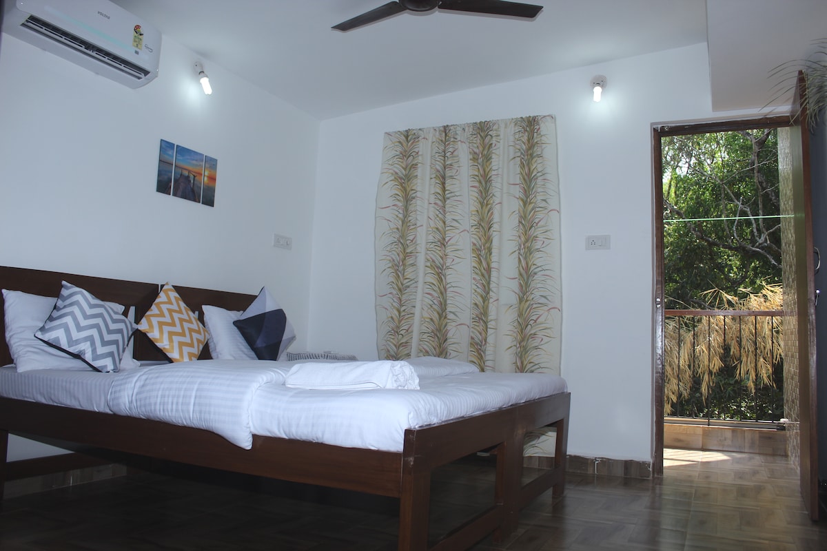 "Benvenuti nella baia di Aaria, dove la vista sulla collina e la bella atmosfera si scontrano! Questa accogliente proprietà è dotata di tutti i servizi essenziali: elettrodomestici moderni, una piscina rinfrescante e una posizione privilegiata vicino alle vivaci spiagge, alla vita notturna e ai mercati di North Goa. Che tu sia qui per esplorare o semplicemente per rilassarti, questa è la tua base perfetta a Goa. Rilassati, goditi il paesaggio e lascia che la magia di Goa prenda il sopravvento!" Perfetto per coppie/piccole famiglie/single Ottimo posto a un prezzo incredibile! Soddisfazione garantita!