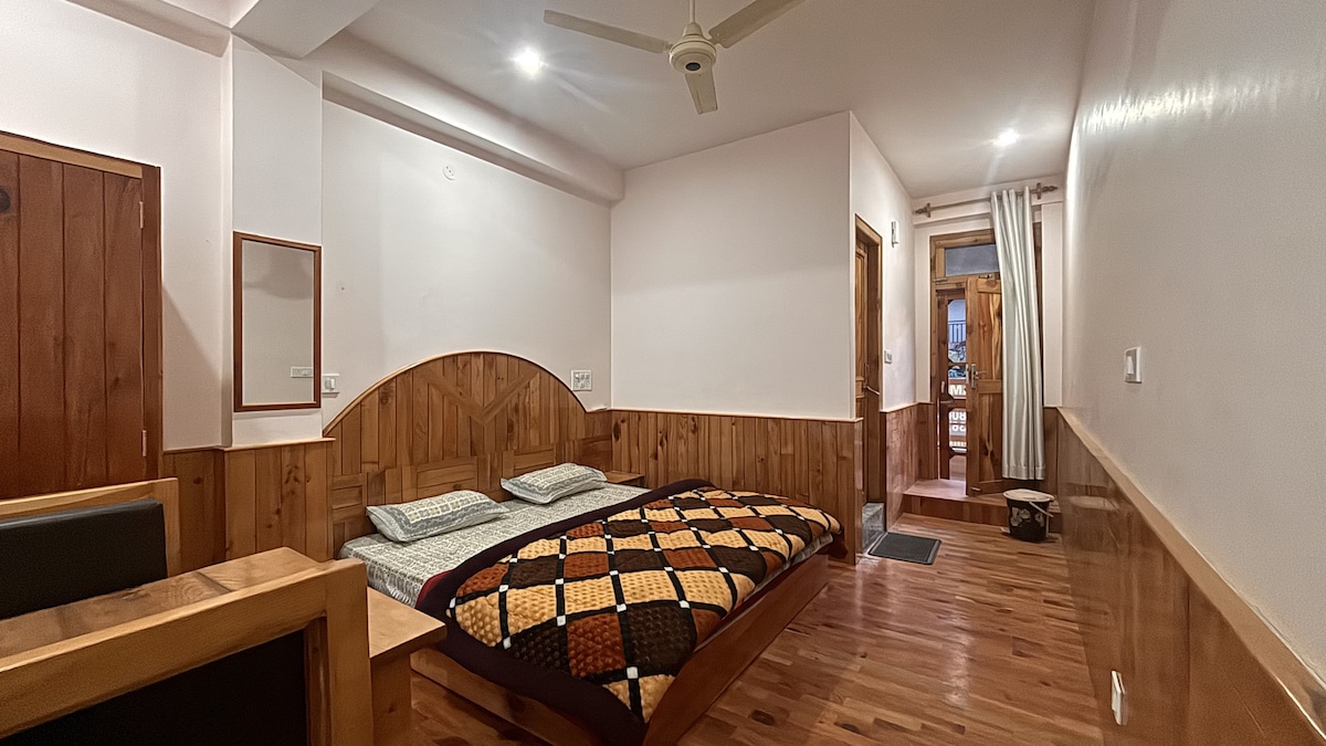 Super cozy Duplex Suite WITH WINDOWS for mountain view. One bedroom on lower level with one washroom and a wooden stairs to upper level bedroom. it has a sofa set on upper level where 4-5 guest can sit and enjoy food. ROOM INCLUSIONS : -Comp Mineral water on arrival -Free WI-FI , parking Free Breakfast (Morning 8.30 till 10.30am)served at dining area only (No Room Service) -Heater at additional 300/- rs charge Room is on 3rd Floor Note *No provision of lift*
