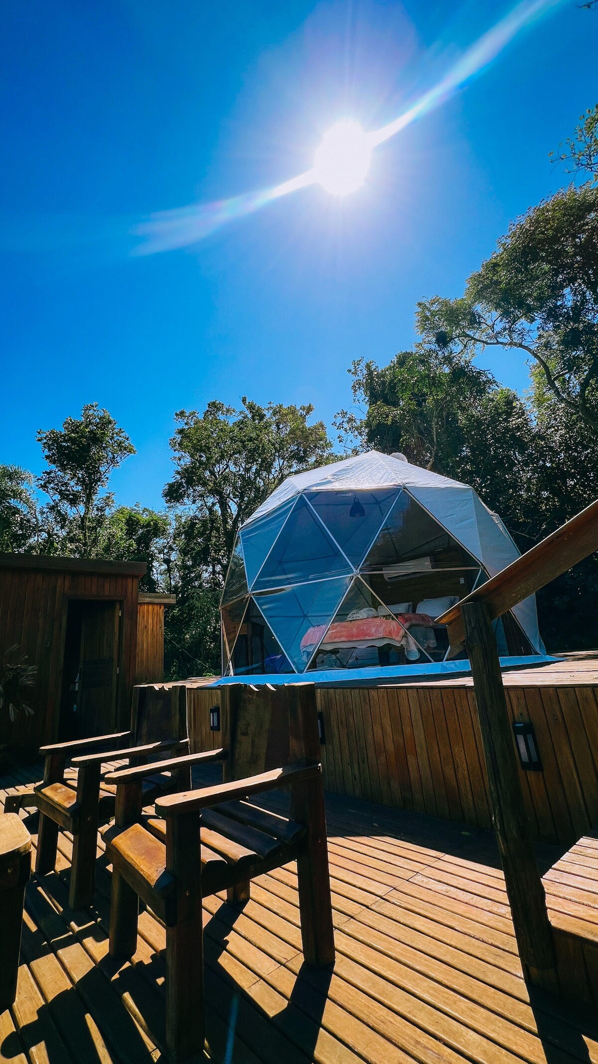 Vivi un'esperienza indimenticabile nella nostra micro casa con soffitto in vetro! Dormi sotto le stelle, svegliati con la luce del sole e sentiti parte della natura. Con un design accogliente, un letto confortevole, una cucina funzionale e un bagno privato, questo rifugio è perfetto per le coppie e per chi cerca riposo, romanticismo e momenti unici.
