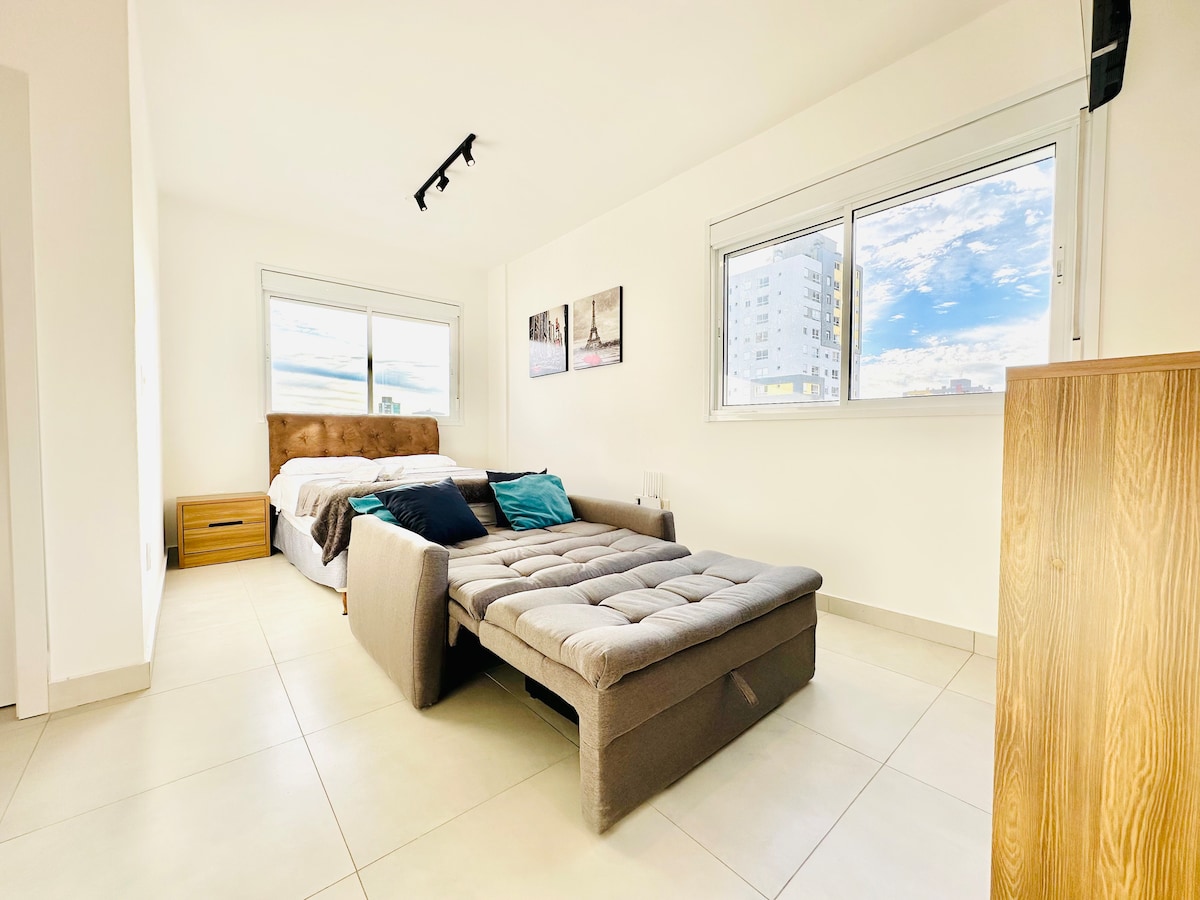 * MATERASSO DI ALTA QUALITÀ * DOCCIA A GAS * BAGNO EXTRA PULITO E IGIENIZZATO. * Smart TV LG da 50 pollici Monolocale centrale con telecamere di sicurezza nell'edificio. Completamente arredato. Silent Township chiudendo le finestre, buio quando si chiudono le tende. Palestra disponibile. Garage con facile accesso e che permette camion come Hilux, Ranger Raptor, Amarok... Sulla via gastronomica: vicino a vari tipi di snack e ottimi ristoranti.
