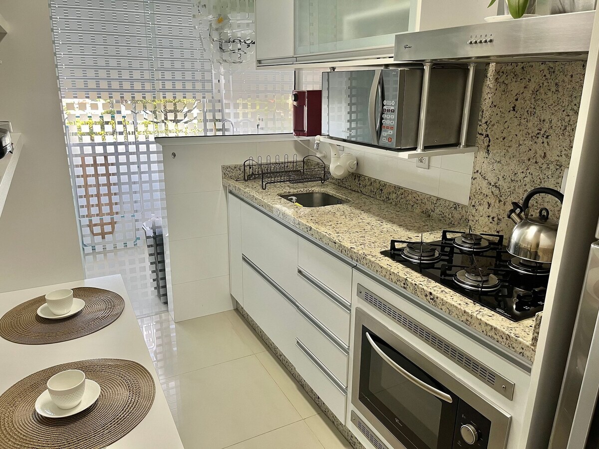 Appartamento tutto progettato situato nel centro di Passo Fundo, vicino all'ospedale di cliniche, Ospedale São Vicente de Paulo, FGV, shopping. Completamente completo. Dispone di garage, 2 aria condizionata caldo/freddo in camera e soggiorno, 1 letto estremamente confortevole oltre a un divano con apertura che diventa un divano letto per coppia e un materasso extra per coppia. Wi-Fi, 2 smart TV una da 40 pollici in soggiorno e 32 pollici in camera, barbecue con griglia, cucina completa, altri oggetti necessari.