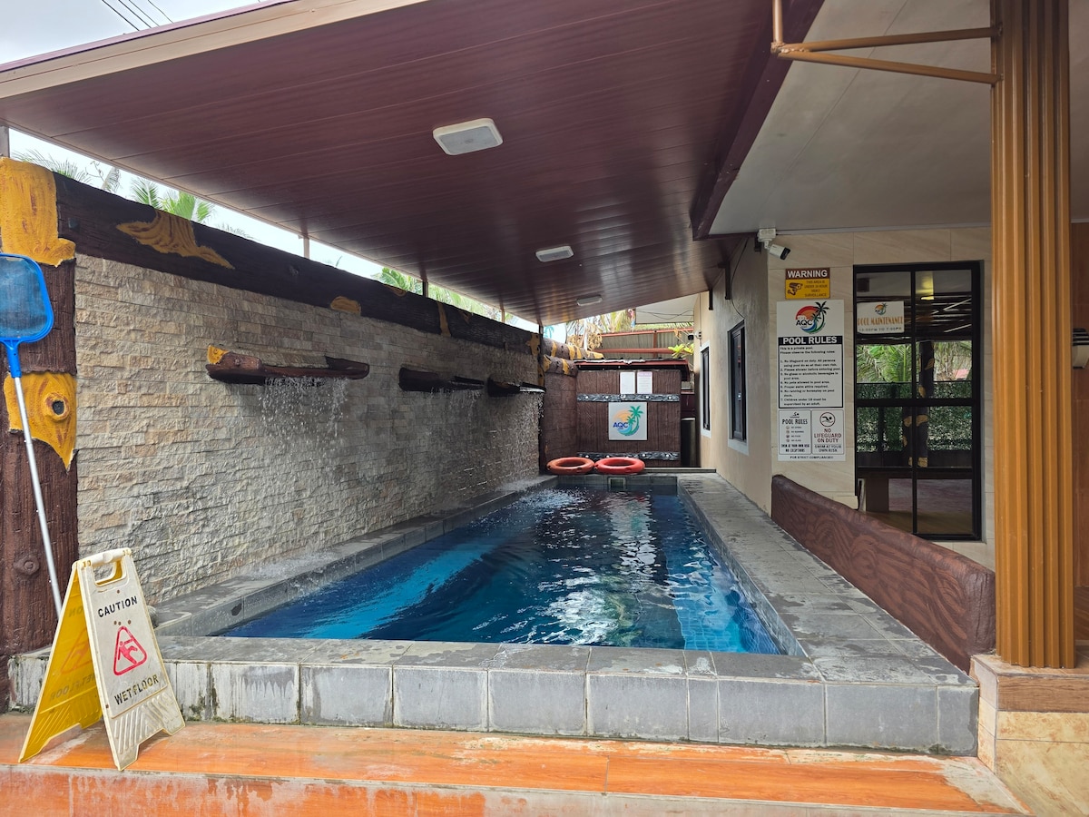 Entra in una casa A-frame, dove il design tropicale bianco incontra il massimo comfort. Dagli interni eleganti all'oasi esterna inondata dal sole, ogni dettaglio è meticolosamente realizzato per un soggiorno di lusso. Grazie alla sua disposizione intelligente, questa casa A-frame massimizza lo spazio senza compromettere lo stile o la funzionalità, sia che tu stia rilassandoti a bordo piscina, dondolando sull'altalena in rattan o godendoti la zona giorno e pranzo a pianta aperta. Il REDWOOD CABIN offre un rifugio tranquillo nel cuore di Bolinao.