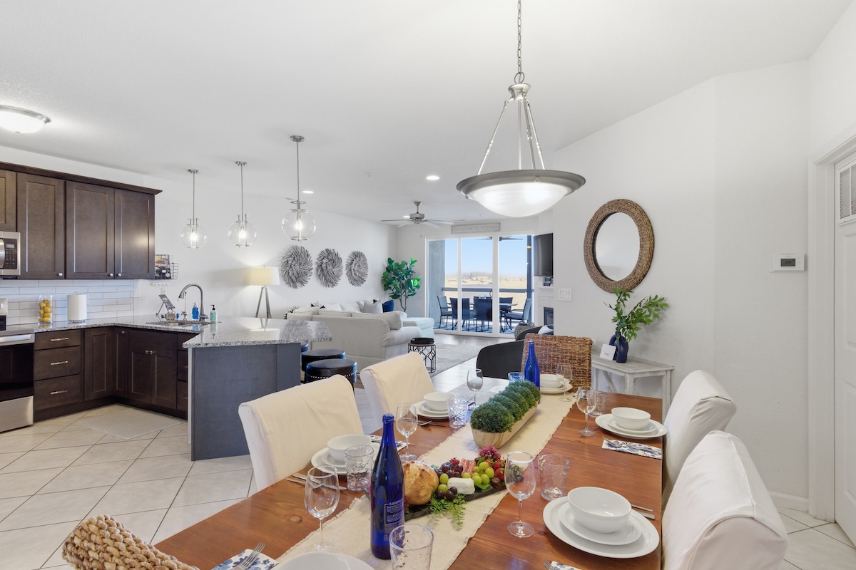 Abbiamo rinnovato il nostro spazio pensando a te! Unità all'estremità del livello superiore con soffitti a volta, molta luce naturale, vicino al ponte per nuotare e ai servizi. Mobili confortevoli ovunque! Il resort è un classico sul lago e in posizione centrale. La tua famiglia adorerà trascorrere del tempo qui, creando ricordi alle piscine e nel lago, o al parco giochi e sui campi da tennis. Puoi quasi sentire le risate di familiari e amici sul ponte! Vicino a ristoranti, intrattenimento e divertimento. Ci piacerebbe aiutarti a pianificare la tua prossima vacanza!