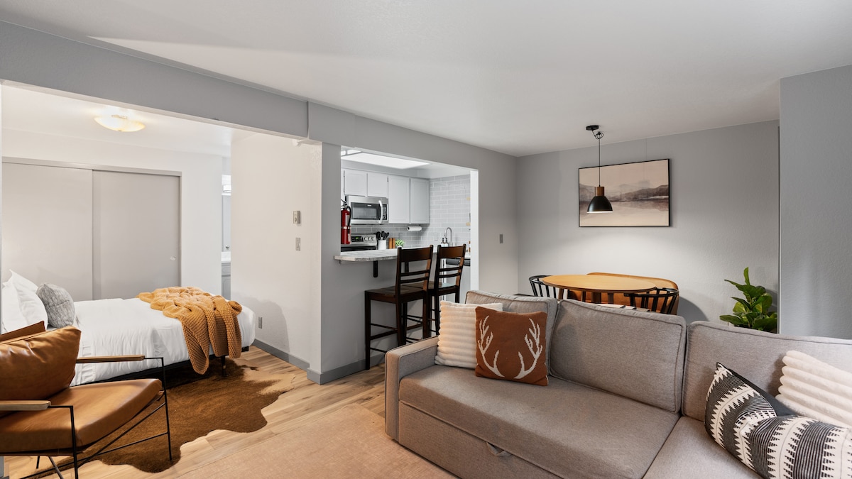 Rilassati in questo tranquillo monolocale moderno in posizione centrale. Situato a un miglio dal centro di McCall e dal lago Payette. È completo di cucina completa, letto matrimoniale, vasca idromassaggio privata, divano letto, bagno completo e splendida vista sui pini ponderosa dalle finestre. Questo monolocale si trova in una posizione meravigliosamente tranquilla che ti permette di goderti tutta la bellezza e l'avventura di McCall: escursioni a piedi e in bicicletta, pesca, canottaggio, spiagge, parchi, sci, ciaspolate, sci nordico e molto altro ancora.