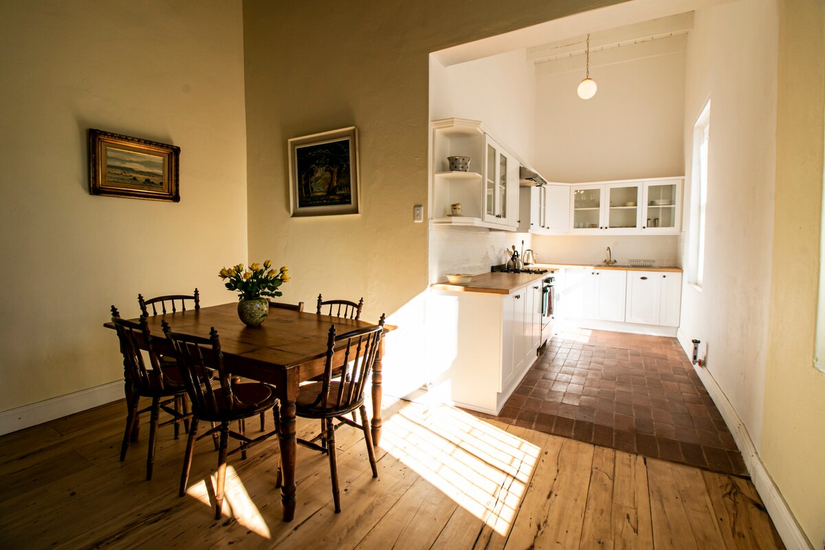 Un bellissimo cottage Karoo con tutti i comfort di cui hai bisogno per un pernottamento. In una tranquilla strada senza sbocco nel centro della città. Tre camere da letto (2 con letti king-size XL), aria condizionata e due bagni moderni (uno con doccia, l'altro con vasca e doccia). C'è una cucina completamente attrezzata con macchina Nespresso, un soggiorno separato, una zona pranzo e un'area esterna con un Webber Braai. Una doccia esterna con vista sulle stelle e sullo Spandaukop ti offre la perfetta sensazione di Karoo.