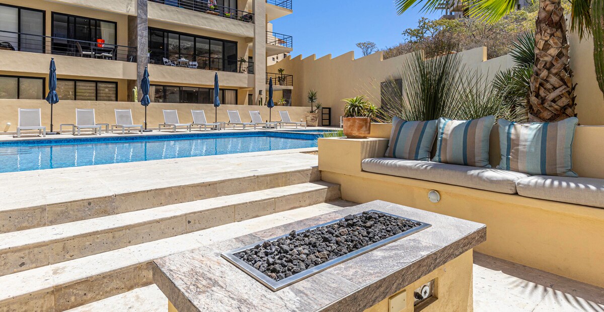 Enjoy the luxury lifestyle in this exquisite 2-bedroom, 2-bathroom apartment offering unparalleled views of Cabo San Lucas, reaching out to the horizon of the sea. Situated in a privileged location, this residence provides luxurious amenities on the 4th floor is the pool area, firepit, gym, and a bar, perfect for entertaining or relaxing in style. Experience the epitome of comfort and convenience in this meticulously designed sanctuary.