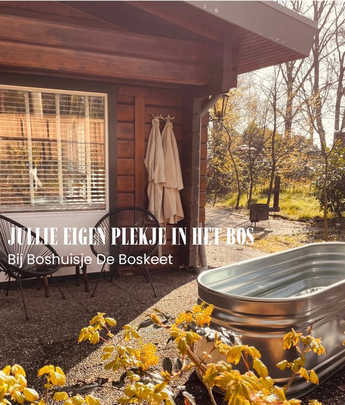 Boshuisje de Boskeet betekent, ontspannen in vintage charme en luxe van nu. Buiten staat een hottub & fijne kookkachel om te bakken, grillen of vuur te stoken. Het huisje heeft alles wat je nodig hebt, een vaatwasser, wasmachine, grote koel- en vrieskast & comfortabele bedden met extra kussens van verschillende diktes. De woonkamer met 2 ruime banken nodigt uit om je lekker terug te trekken in de intieme sfeer van het huisje. Word wakker met de natuur en loop zo het bos in.