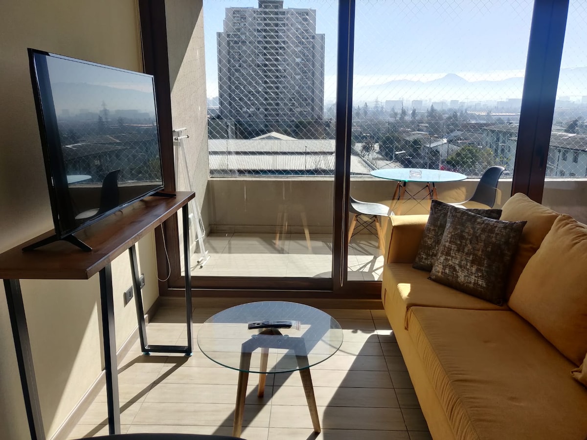 Rilassati in questo spazio accogliente. Ampio balcone con una stupenda vista su Santiago Oriente, in un edificio di sei piani. Alloggio confortevole con tutto il necessario per un soggiorno lungo; il sole splende per la maggior parte della giornata. Aria condizionata da 12.000 BTU. Con parcheggio privato XXL. Vicino alla stazione della metropolitana Camino Agrícola. Situato nel cuore del quartiere universitario, a pochi passi dall'Universidad Católica de Santiago (UC SJ) e a pochi minuti dagli stadi più importanti del Cile, il Nacional e il Monumental. Ricicliamo, riutilizziamo e adottiamo pratiche sostenibili.