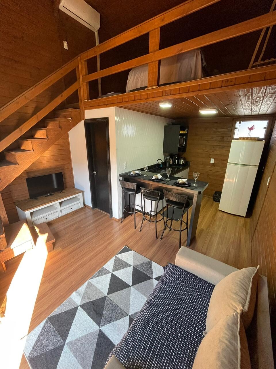Comfort and sophistication await you in this fully equipped chalet. The bedroom on the mezzanine has air conditioning and a private balcony, providing a serene space for your rest. The living room with a sofa bed and Smart TV, and the full kitchen, ensure convenience and leisure. Just a few minutes from Praia de Gravatá and with easy access to markets, you will have a strategic location to enjoy the best of Penha. Book now and guarantee your stay!
