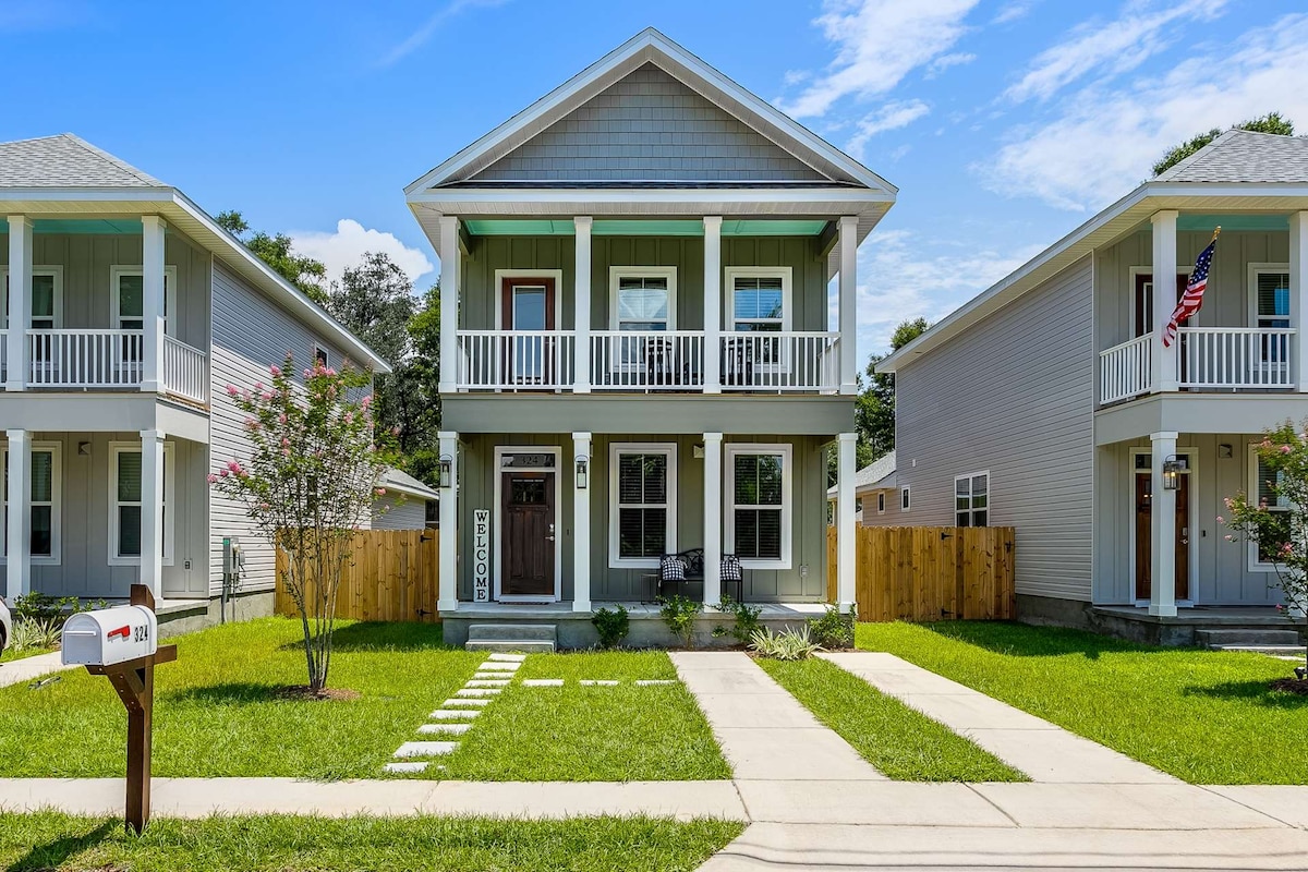 The Gray Lady è un lussuoso cottage nel centro di Pensacola. Combina due pezzi di paradiso: prende il nome da Nantucket e si trova a Pensacola. Questa casa può ospitare 9 persone. Rilassati nell'oasi sul retro, dotata di vasca idromassaggio privata! Un parco, un birrificio e ristoranti sono tutti raggiungibili a piedi. A solo un miglio dal centro, assicurati di dare un'occhiata ai ristoranti, ai negozi e alla vita notturna! Pensacola Beach, NAS, Fort Pickens, il centro commerciale e l'aeroporto sono tutti a 15 minuti di distanza. Ti auguriamo un piacevole soggiorno!