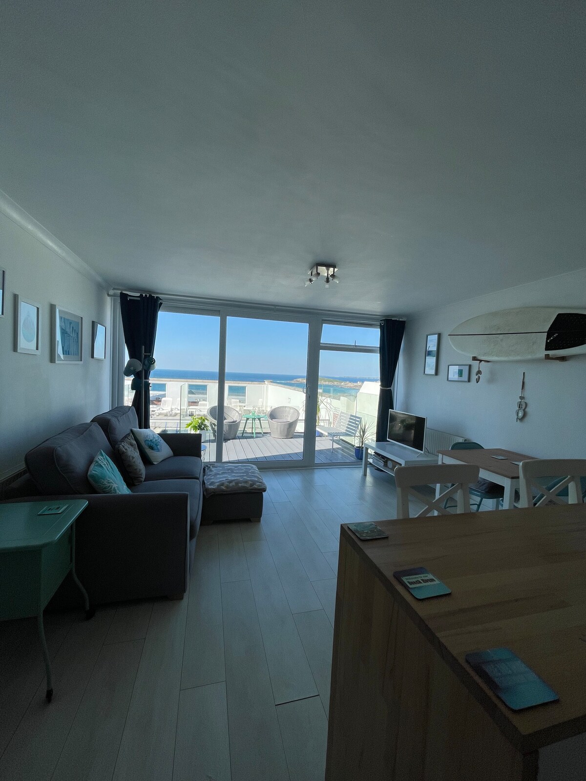 Modern and stylish freshly renovated apartment situated in an enviable position with breathtaking views overlooking Fistral Beach. This spacious one bedroom apartment is just perfect for those short to medium term getaways where you can sit and gaze at the amazing view with your favourite drink or a two minute walk down to the beach and dip your toes in the Atlantic ocean. Fistral beach is also a surfers paradise where you are literally right on the doorstep.