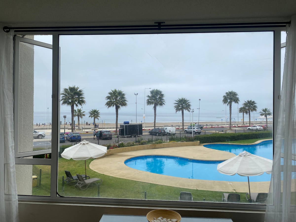 Di fronte al mare, in prima fila sulla spiaggia, accanto al casinò Enjoy. Vista diretta sul mare. Edificio con tutti i comfort, piscine, palestra, lavanderia, portineria 24 ore, parcheggio coperto. A pochi passi dai migliori ristoranti, minimarket, pista ciclabile e a 20 minuti dall'aeroporto di Coquimbo. Appartamento completamente attrezzato, con 3 camere da letto, per 6 persone. Dispone di TV via cavo, internet, cucina attrezzata, vasca idromassaggio nella camera da letto principale, biancheria da letto e asciugamani.