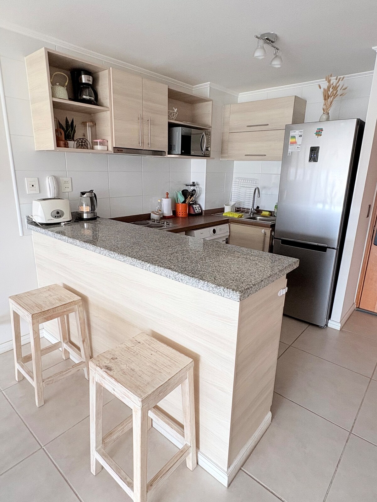 Se cerchi una splendida vista o cartoline panoramiche, questo è il posto che fa per te. L'appartamento ha un'ampia vista privilegiata su Coquimbo e La Serena, al 19° piano del condominio. Qui troverai tutto il necessario per rilassarti e goderti qualche giorno in spiaggia. Camera doppia con bagno. Cucina attrezzata. Wi-Fi. 2 Smart TV, canali via cavo. Accesso con chiave digitale. Aree barbecue, palestra e piscina. Vicinissimo al Casinò, a bar e ristoranti.
