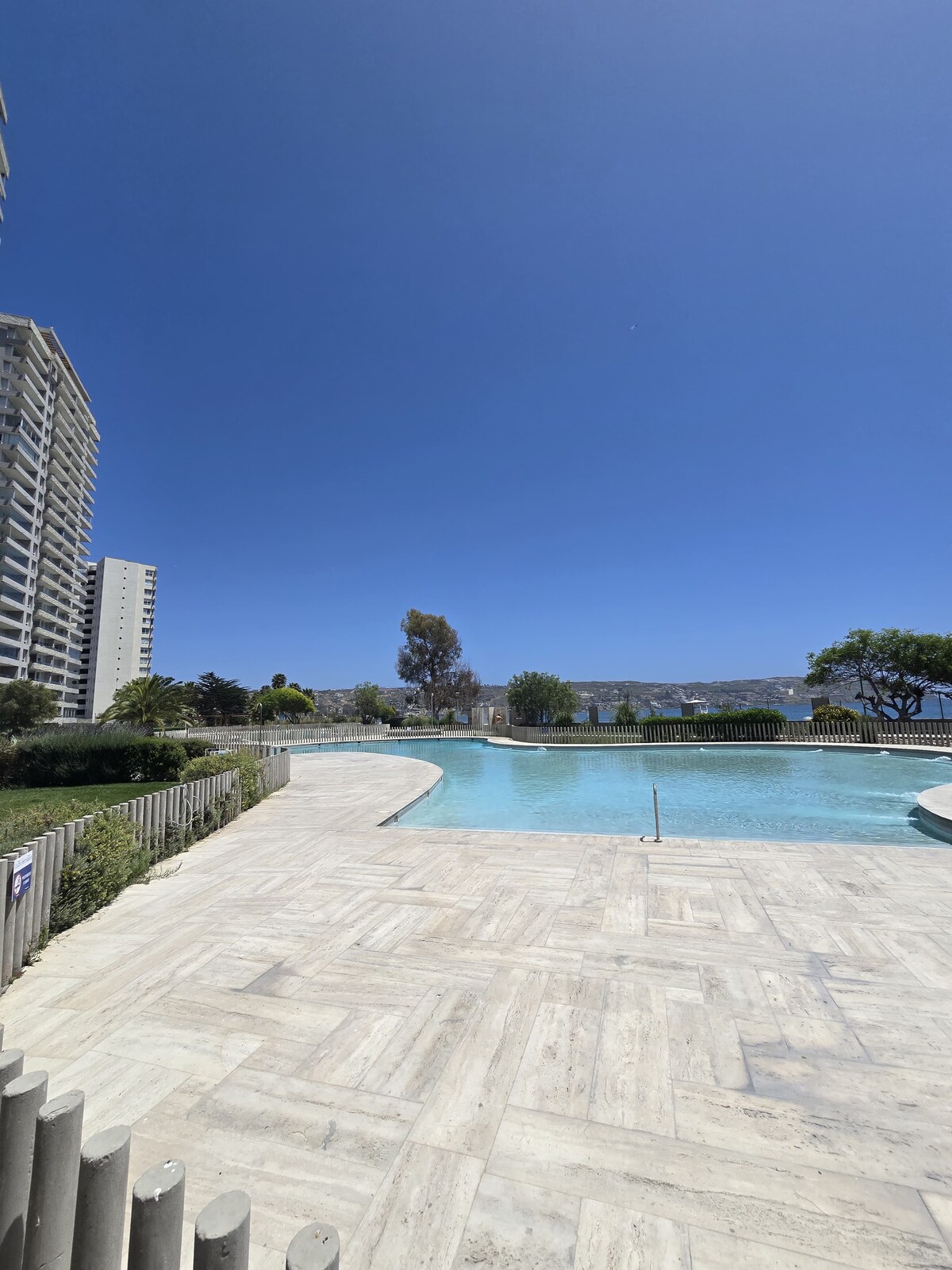 Appartamento di lusso nell'edificio Jardín del Mar. In prima fila, fronte mare, accanto al Casinò Enjoy. Appartamento al 4° piano, ampia terrazza con vista sul mare e piscina principale. Completamente attrezzato. Grandi piscine all'aperto, piscine riscaldate. Include lenzuola e asciugamani. Jacuzzi, palestra, sauna, piscina riscaldata, indossare una cuffia da bagno. Parcheggio privato. Include SmartTv, TV via cavo (include il calcio nazionale) nella camera da letto principale e nel soggiorno e Internet per il telelavoro.