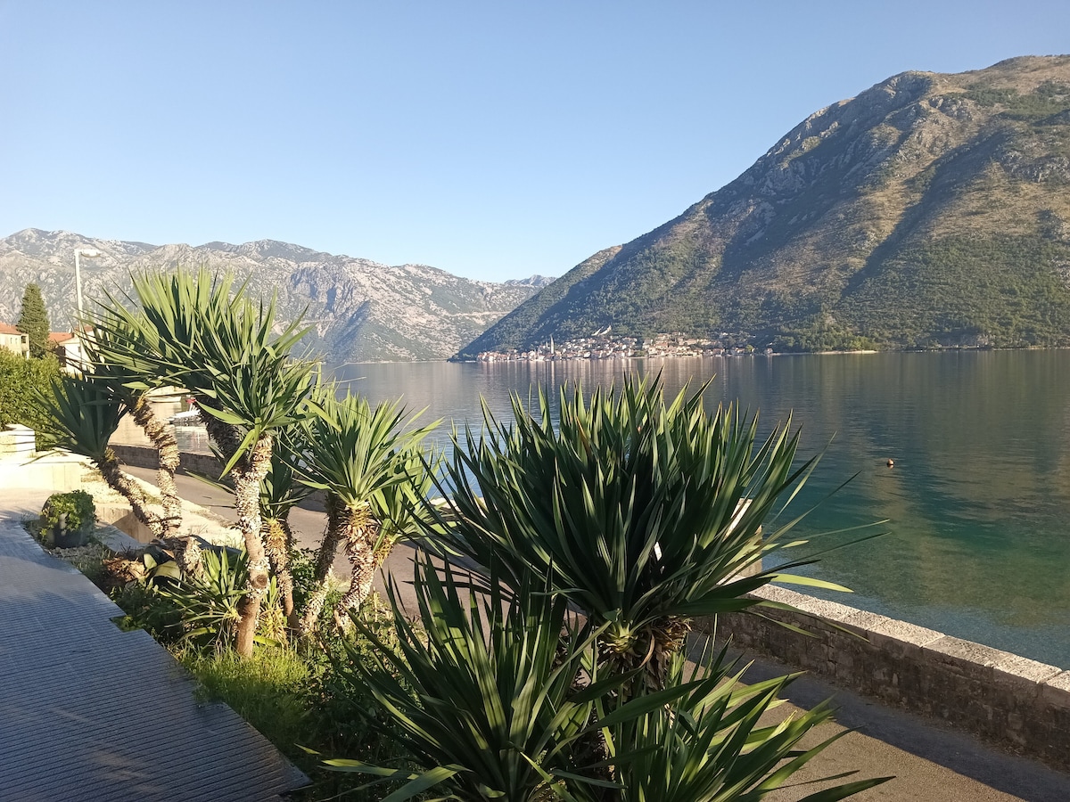 CASA FAMILIARE PERFETTA! Questo spazioso appartamento di 50 m² si trova a soli 50 passi dal mare. Ti piacerà per molte ragioni, ma soprattutto per la vista mozzafiato. L'appartamento si trova nella parte più soleggiata della baia di Cattaro, una zona bella ed elegante, vicino all'incantevole chiesa settecentesca di Sant'Eustachio. La posizione è perfetta per esplorare i gioielli della baia di Boka: sia il centro storico di Kotor che Perast si trovano a soli 5 km di distanza. Avrai il tuo WIFI portatile per condividere i tuoi momenti migliori ovunque tu sia