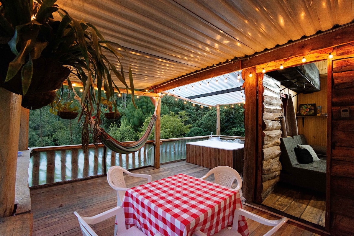 Benvenuti a SELVA NEGRA CABINS, questa esperienza in cui potrai godere di una splendida vista sulla città e vedere gli aerei decollare sarà un sogno! Il contatto con la natura, l'architettura e la magia del paesaggio ti conquisteranno in ogni momento. La baita è immersa nella montagna, dispone di letto rotante, vasca idromassaggio riscaldata, cucina e barbecue. Potrai godere di servizi come: catering dal vivo, esperienza di cocktail, parapendio, spa, piste ciclabili. Deliziosa colazione inclusa.