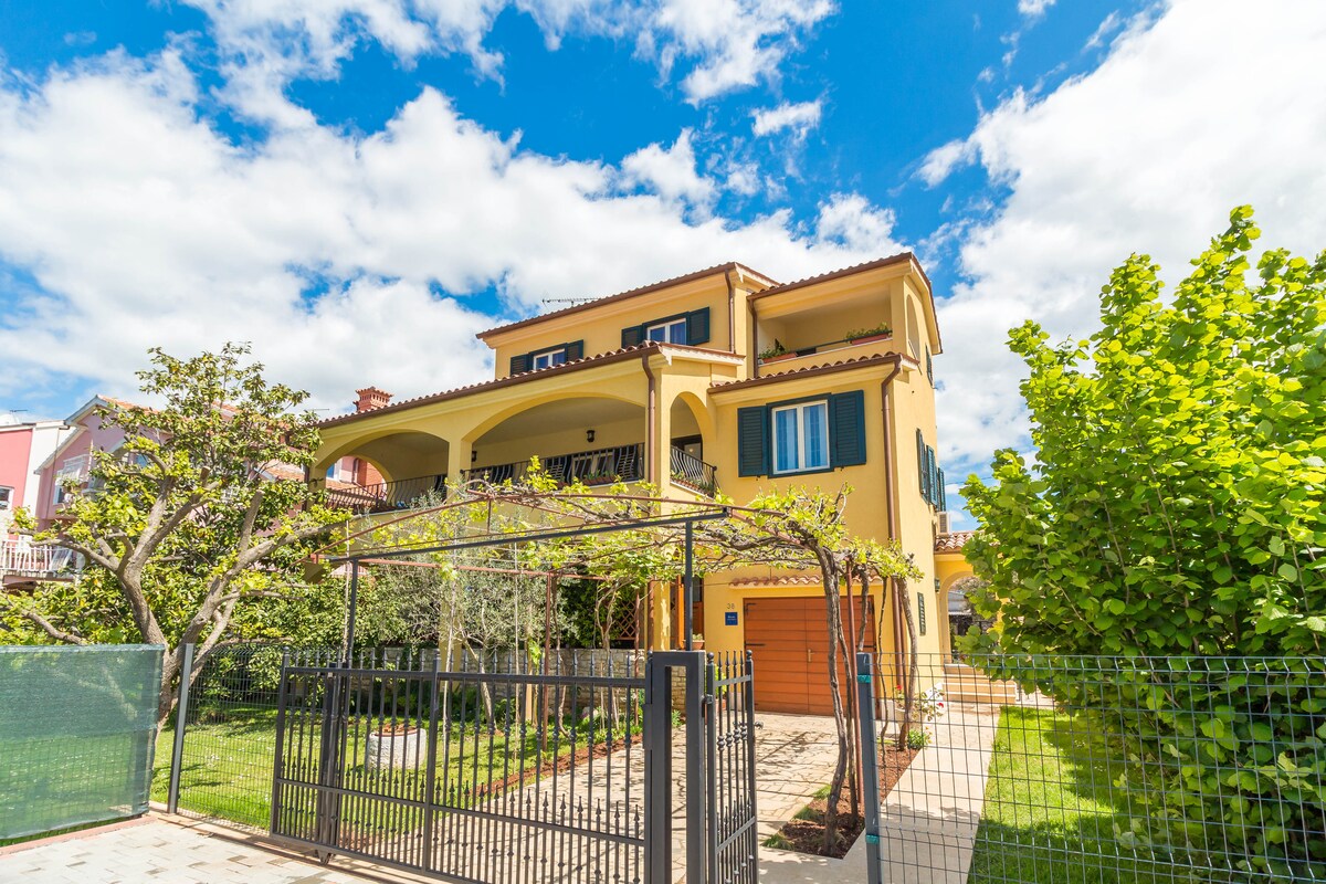 Splendido appartamento completamente ristrutturato a Peroj, una piccola città molto vicina al mare (a soli 10 minuti a piedi o a 2 minuti di auto dalla spiaggia). L'appartamento si trova al 2° piano e dispone di una grande terrazza con vista sul mare Adriatico e sull'isola di Brioni, che ti lascerà senza fiato. L'appartamento dispone di un bellissimo cortile e di un camino perfetto per grigliare e rilassarsi. Nella proprietà gli ospiti possono degustare olio d'oliva fatto in casa e verdure fresche coltivate dal proprietario. Viene fornito un posto auto gratuito.