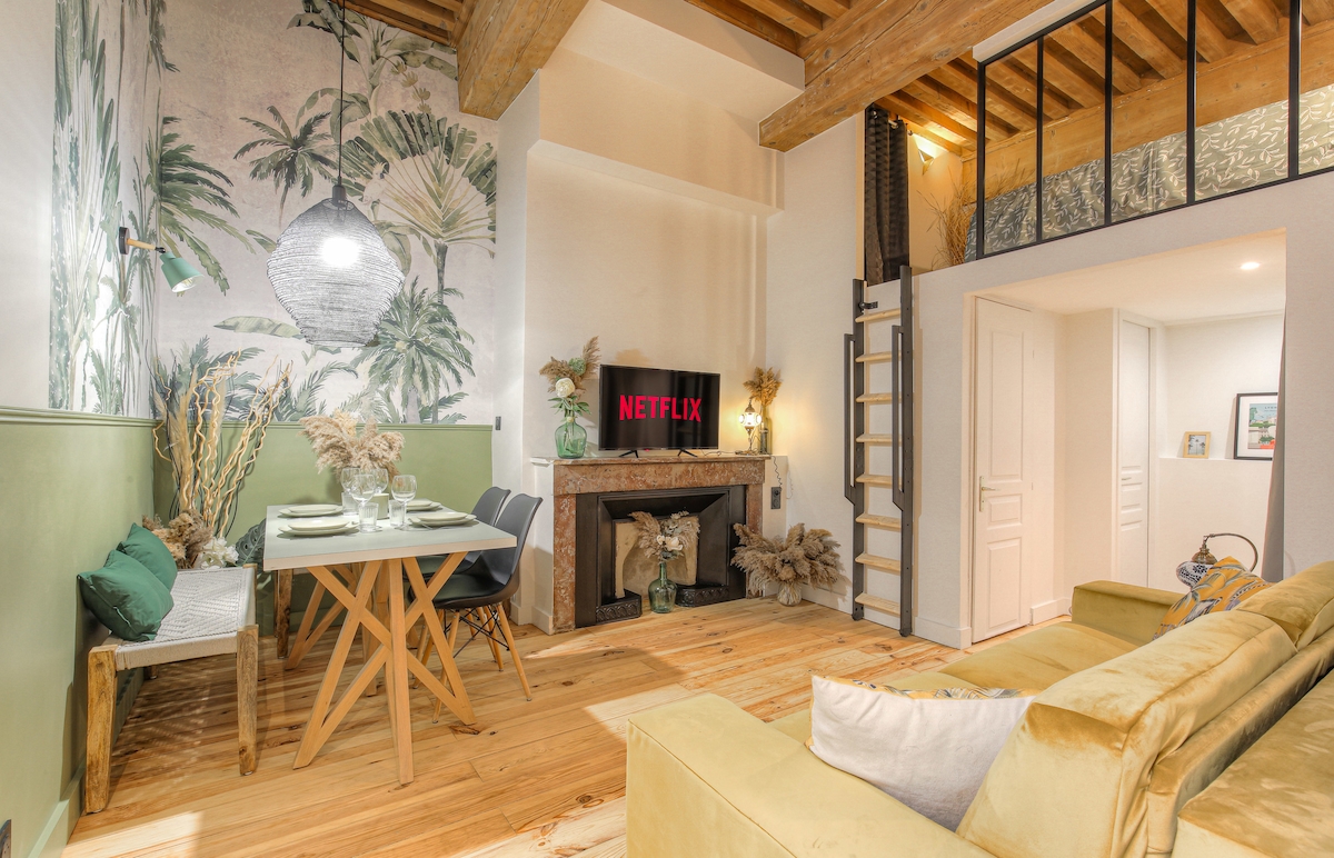 Welcome to your next urban getaway, in the vibrant Croix-Rousse district of Lyon! This exceptional apartment, freshly renovated and meticulously decorated, opens its doors to you for an unforgettable stay. Magical View of Lyon: Perched in a privileged location, this apartment offers a spectacular view of the entire city. Jacuzzi Duo: Imagine yourself immersed in a relaxing bath with a Japanese atmosphere. Our space is designed for unparalleled moments of relaxation.