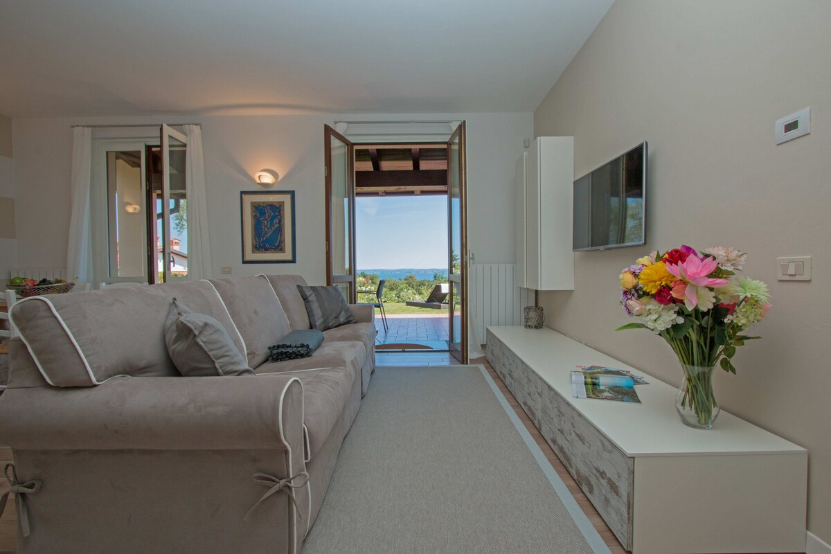 Scopri il piacere di una vacanza a pochi passi dalle rive del Lago di Garda, in un appartamento elegante, accogliente e arredato con gusto. <br>Situato a soli 400 metri dalla spiaggia, qui ogni giornata profuma di libertà e tranquillità, in una cornice perfetta per rigenerare corpo e mente.<br><br><br><br>Dettagli importanti più sotto:<br><br><br><br>