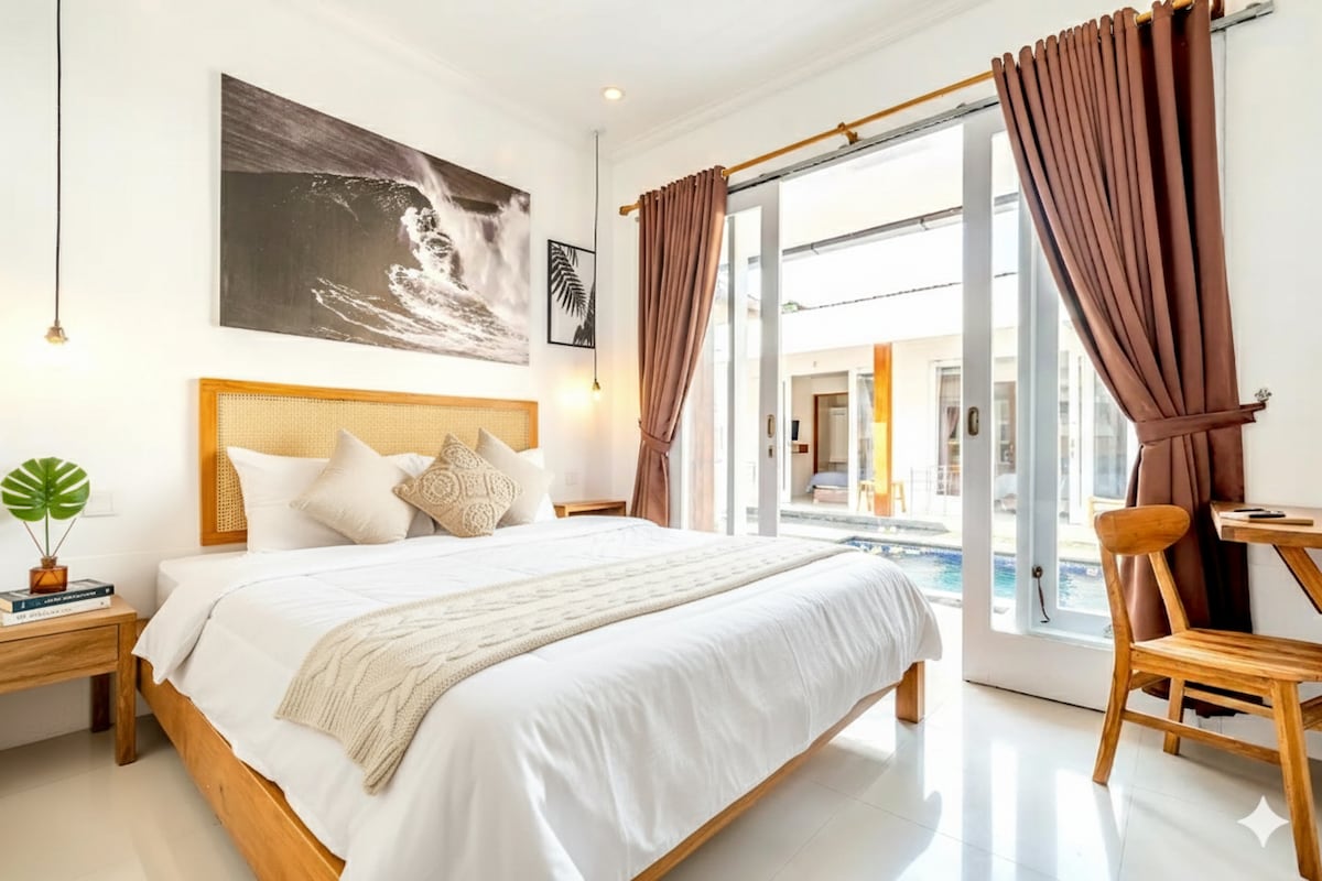 Benvenuto nella tua accogliente stanza privata a Seminyak, a soli 2 minuti a piedi dal famoso Braud Café! Cosa ti piacerà • Lenzuola e asciugamani puliti • Wifi ad alta velocità • Smart TV e scrivania • Acqua inclusa + cucina compatta • Piscina condivisa e spazio comune condiviso • Posizione tranquilla ma centrale vicino ai migliori caffè e negozi Abbiamo creato un ambiente confortevole, basta portare le infradito e il buon umore. Prenota subito e goditi comfort, stile e comodità in una delle migliori location di Bali!