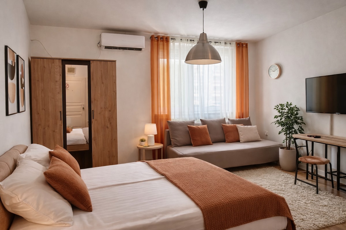 Marco 's Apartment - Ideale per chi viaggia da solo o in coppia. - Eccellente connessione WiFi gratuita e smart TV - Vicino alla zona pedonale. - I servizi includono un parcheggio gratuito, un ascensore, l'aria condizionata e una cucina completamente attrezzata. - Completa 1 camera da letto separata e una zona giorno e lavoro spaziose e luminose. A pochi passi da tutte le attrazioni della città, dal quartiere degli affari IT, dai bar, dai ristoranti e dai club, ma comunque molto tranquillo. Vieni a sentirti a casa!