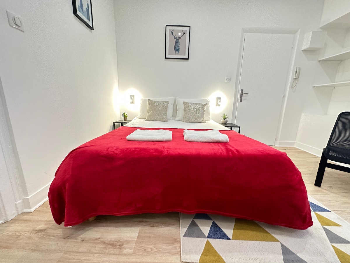 Lo studio è completamente attrezzato: letto comfort, cucina, bagno, servizi igienici, internet ad alta velocità, smart tv, gel doccia, shampoo e asciugamano. Oltre a questo monolocale privato, si può accedere a una bella stanza condivisa. Questa è composta da un'ampia cucina, una lavanderia e una caffettiera a grani self-service. Situato in posizione ideale, troverete numerosi parcheggi gratuiti nelle vicinanze, una caffetteria e un supermercato a pochi passi dall'alloggio.