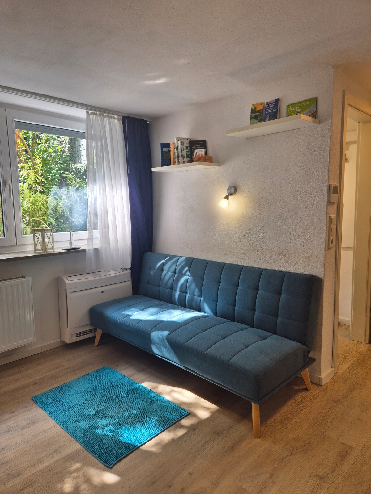 Una zona giorno e notte accogliente e aperta con angolo cottura, tavolo da pranzo e scrivania separata invita a sentirsi bene. Il bagno è dotato di doccia, lavabo e wc. Nella cucina moderna si trova tutto il necessario: macchina da caffè Senseo, bollitore, piano cottura in vetroceramica, forno, microonde, frigorifero, pentole, stoviglie, ecc. Se manca qualcosa, non esitate a contattarci.