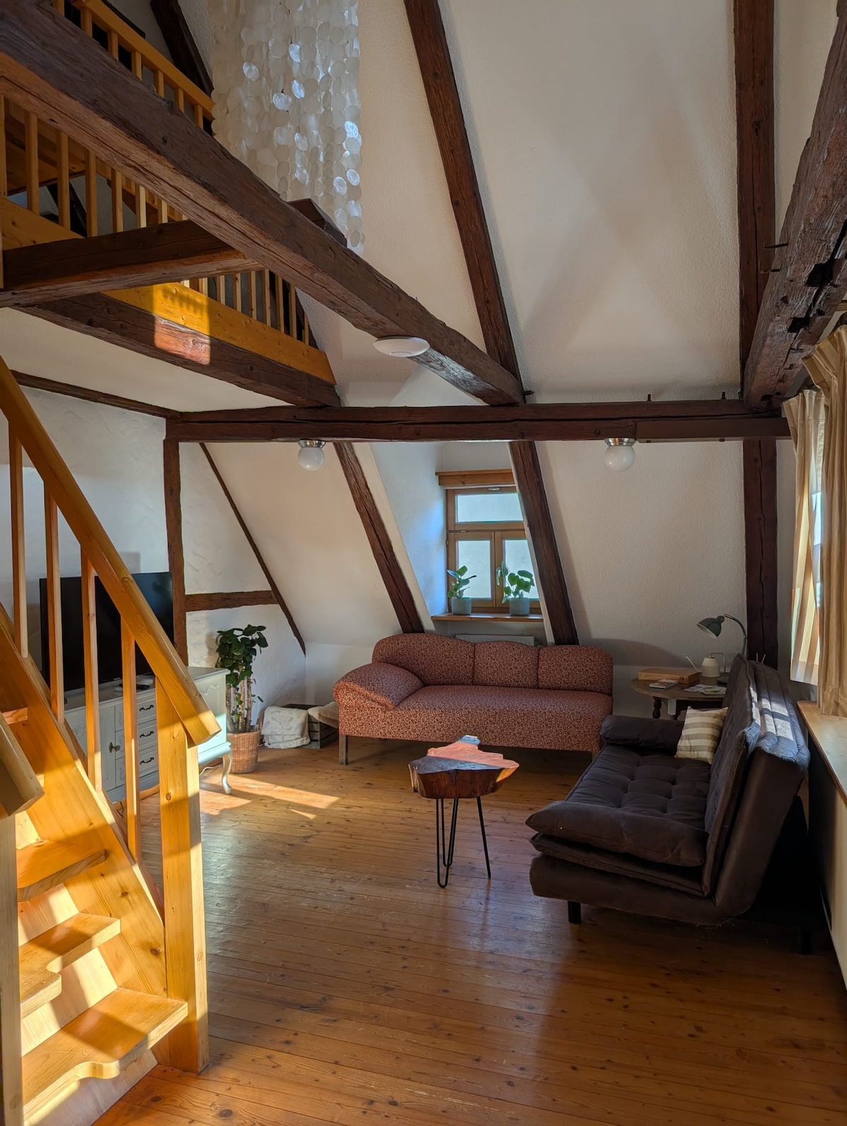 Ein ehemaliger Dachboden in einem charmanten Altbau wurde 2016 zu einem Studio mit Liebe zum Detail ausgebaut. Es findet sich darin kaum etwas, was es so zu kaufen gibt. Über einen kleinen Dachaustritt blickt man über die Dächer von Nürnberg. In dem gemütlichen und einzigartigen Raum fühlt man sich einfach zu Hause und kann die Ruhe genießen. Zentral und dennoch sehr ruhig gelegen, erreicht man mit der U-Bahn in 10 Minuten das Zentrum von Nürnberg.