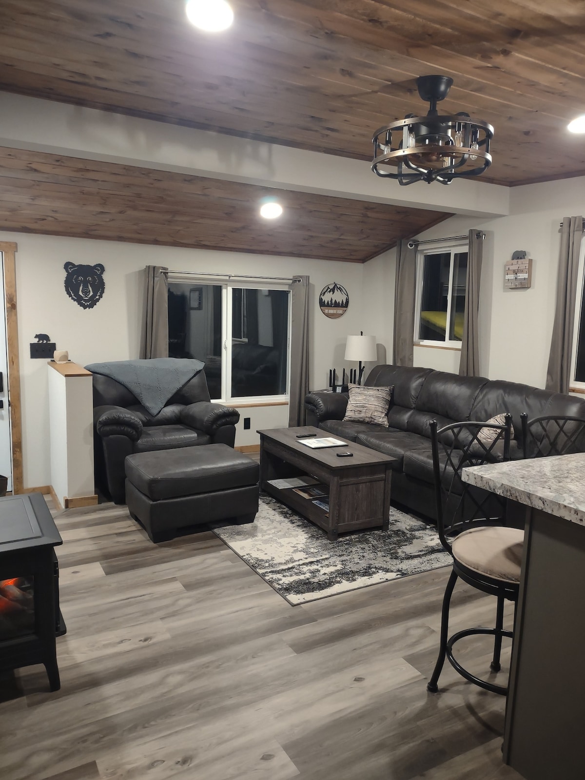 Relax with the whole family or some friends at this peaceful place to stay. Kayak, fish, and swim in the lakes. Sit around the fire, play yard games, rest in the hammock, or watch a movie. There are plenty of ways to keep the kids active inside and outside. This cabin includes a game table, sandbox, board/card games, art supplies, kayaks, row boat, and fishing poles. Make many memories together skipping rocks, catching fireflies, eating smores, taking in the beautiful views, and sharing laughs.